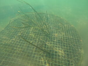 With the removal of over 100 tons of algae and detrital material the river is noticeably cleaner and clearer. New grass units installed after Hurricane Helene are developing the strong and deep root systems necessary to withstand hungry manatees and major storms. New winter permit modifications allowed our contractor, Sea & Shoreline, to regularly inspect and clean the herbivore exclusion cages necessary to protect the new grasses and give them time to mature. Many of these cages are currently full of grasses that have begun to flower and spread out into the adjoining areas.